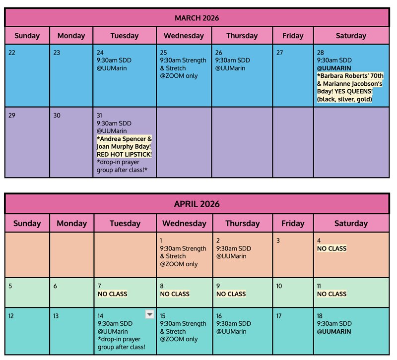 Please join Andrea and Joan for their 75 minute Stop Drop and Dance birthday class at UUMarin and the theme will be "RED HOT LIPSTICK!"