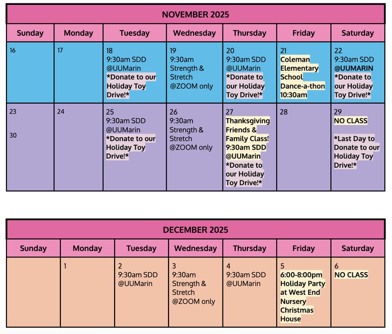 1) Bring a NEW, UNWRAPPED toy for a 4-10 year old to any of our classes from now until Thanksgiving: Thursday, November 27th.