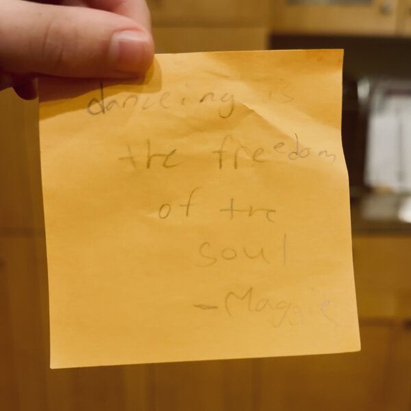 "Hi Grace, so... I'm the one that started to spread this around, and I think you're gonna love it. 'Dancing is the freedom of the soul.' Cuz like basically when you're dancing, basically your soul is letting out all the freedom, and just the excitement, and all that! I love dancing!"