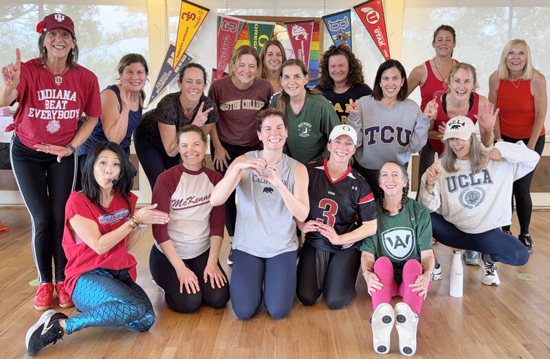They chose the fun theme of representing your favorite school, so everyone showed up in different school colors, college apparel, or even sports swag. We had everything from Indiana University, UC San Diego, Claremont McKenna, UC Berkeley (x4!), Boston College, Utah University, Dartmouth College, Oregon University, Archie Williams High School, Texas Christian University, UC Los Angeles, Cupertino High School, and the San Francisco Giants! Of course, thank you to Erin Meyers and Barb Untermann for coming up with the perfect backdrop with college flags and banners!
